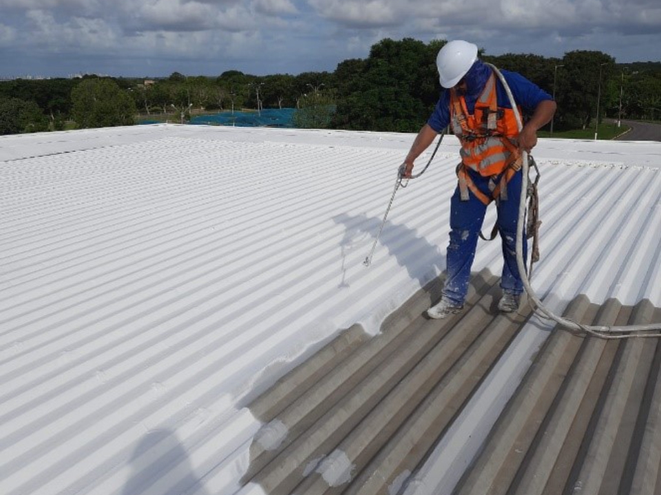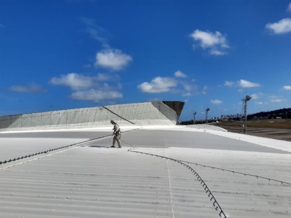 Escopo da obra: Substituição de telhas, Linha de vida, Passarelas, Impermeabilização e revestimento térmico