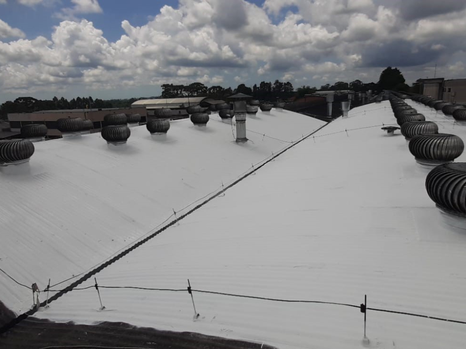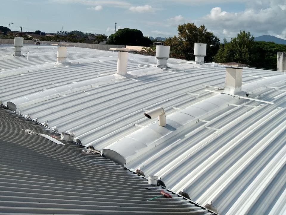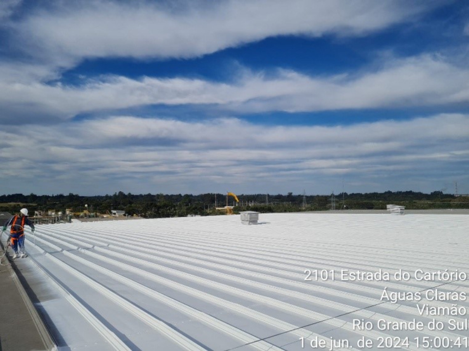 Escopo da obra: Impermeabilização e revestimento térmico em toda a cobertura e calhas