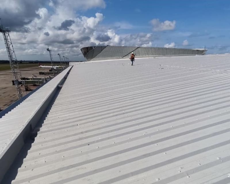 Escopo da obra: Substituição de telhas, Linha de vida, Passarelas, Impermeabilização e revestimento térmico