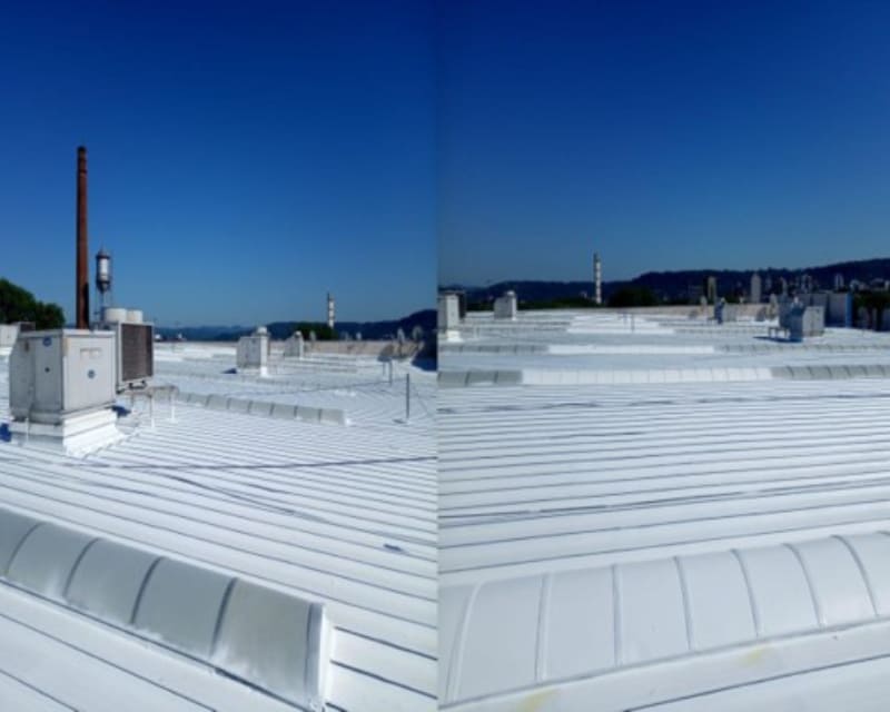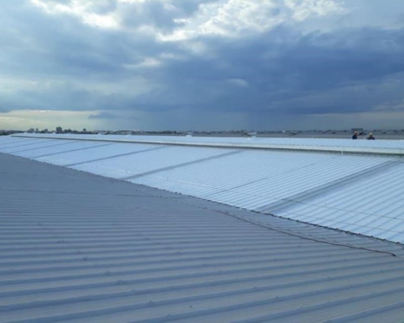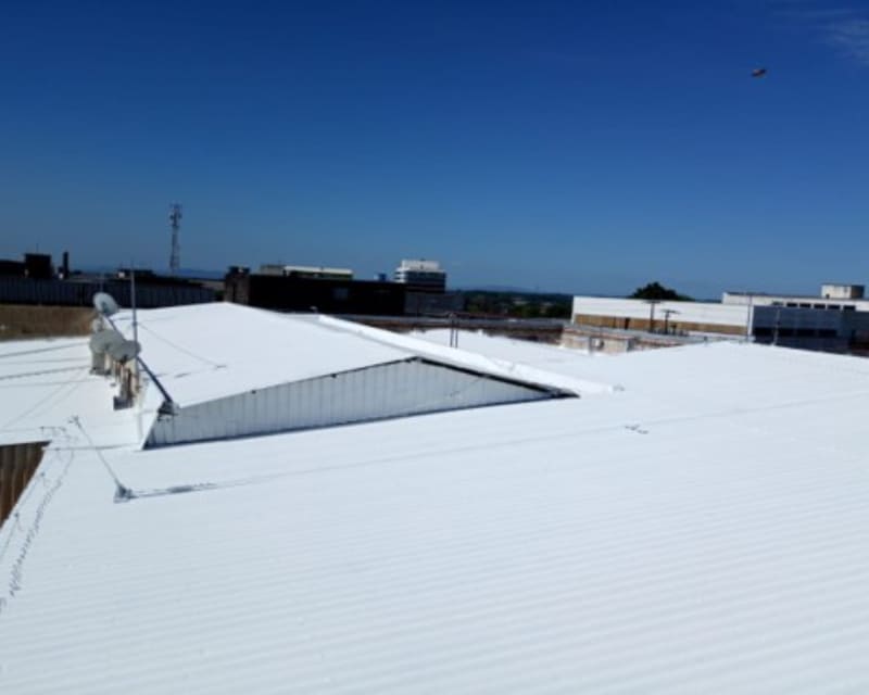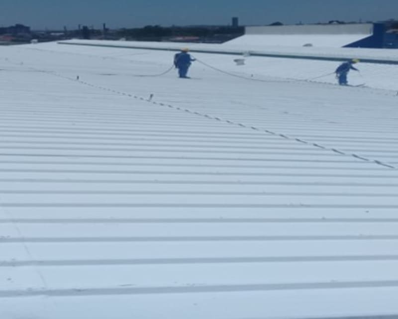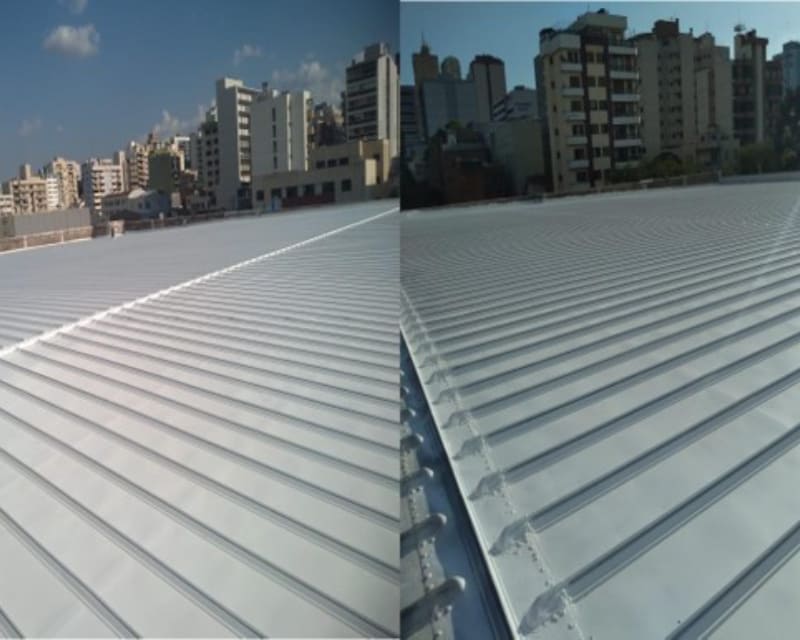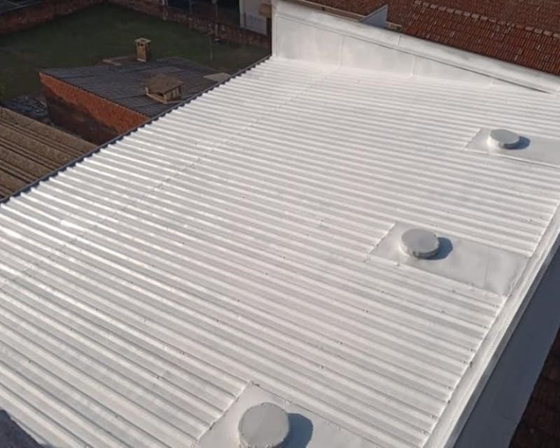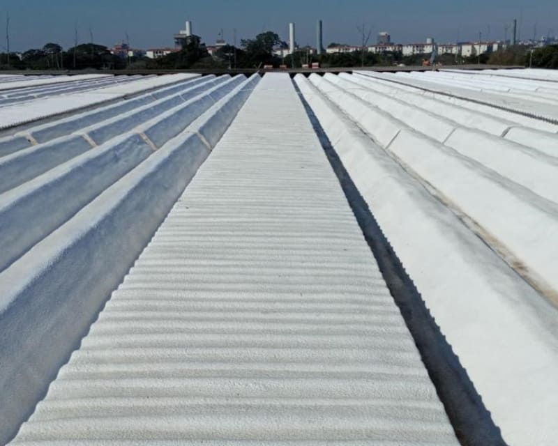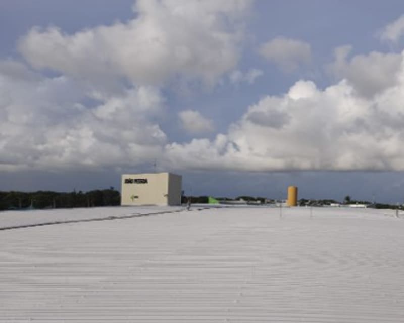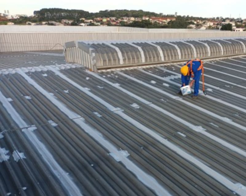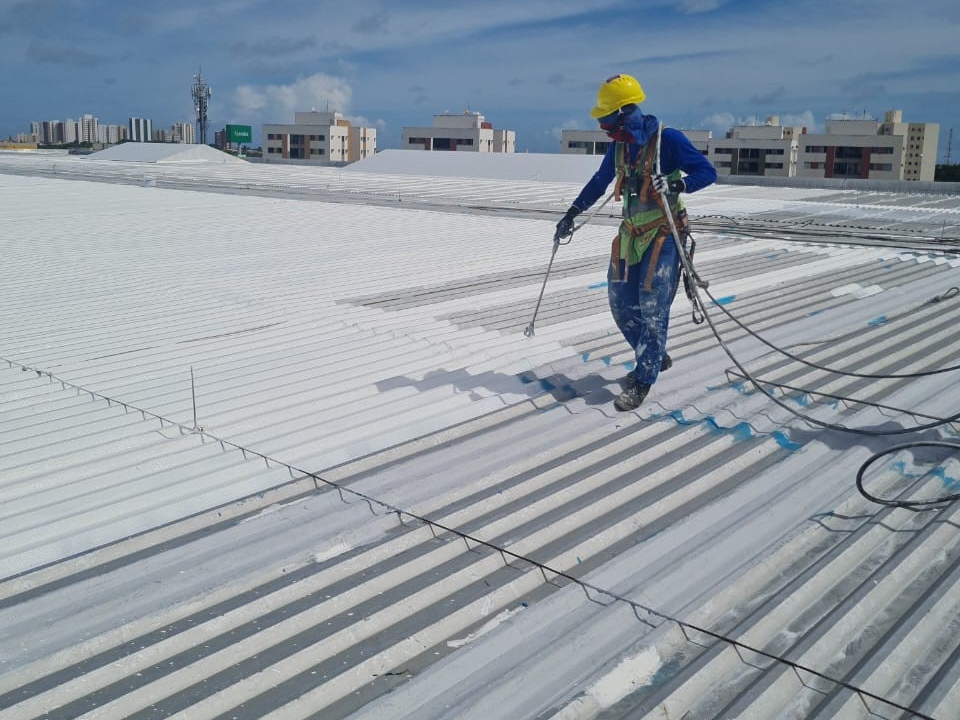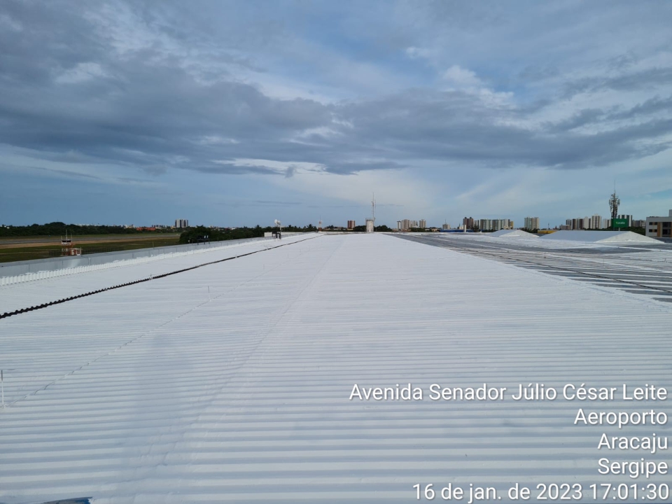 Escopo da obra: Impermeabilização e revestimento térmico em toda a cobertura e calhas
